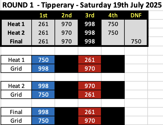Ireland 25/26 Round 1 Results