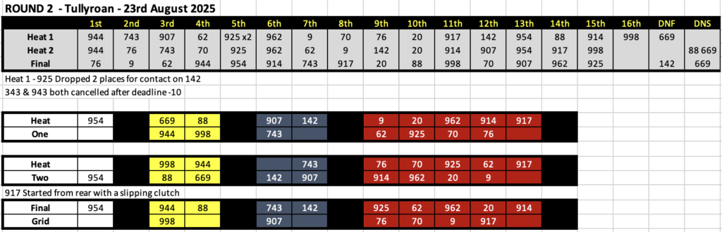 Northern Ireland 25/26 Round 2 Results